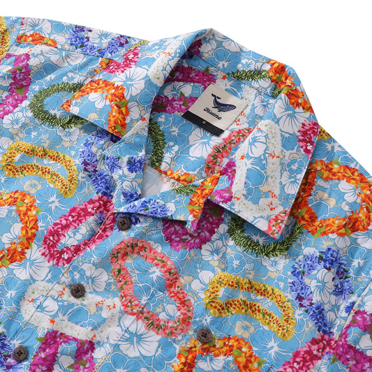 Hawaiian Shirt For Men Floral Wreath Compendium Shirt Camp Collar 100% Cotton