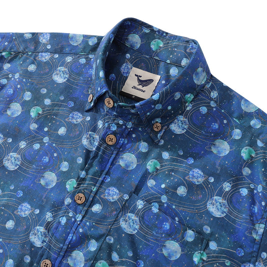 Men's Hawaiian Shirt Lost in Space By Catharina Edlund Cotton Button-down Short Sleeve Aloha Shirt