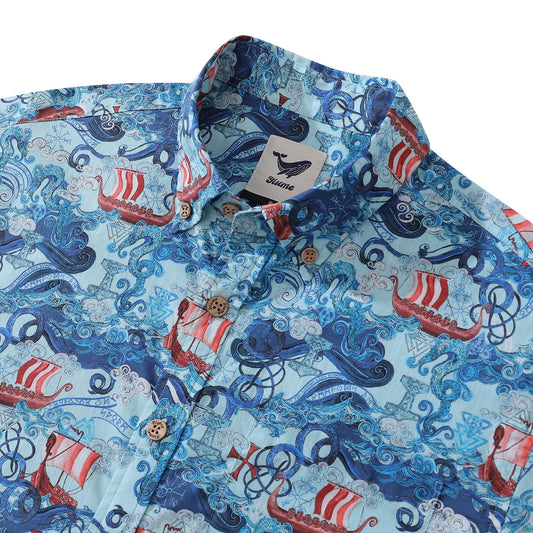 Men's Hawaiian Shirt Vikings By Alice Brown Cotton Button-down Short Sleeve Aloha Shirt