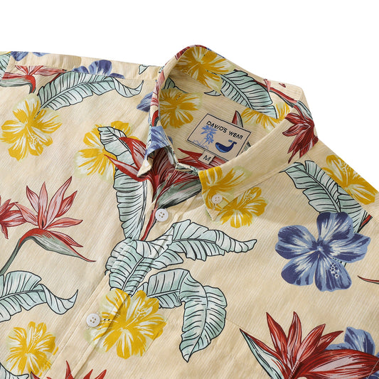 1940s Vintage Hawaiian Shirts For Men Bird of Paradise and Hibiscus Flower Print Shirt 100% Cotton
