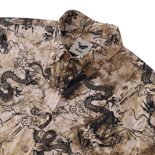 Men's Dragon Shirt Totem Cotton Button-down 1980s Vintage Short Sleeve Hawaiian Shirt