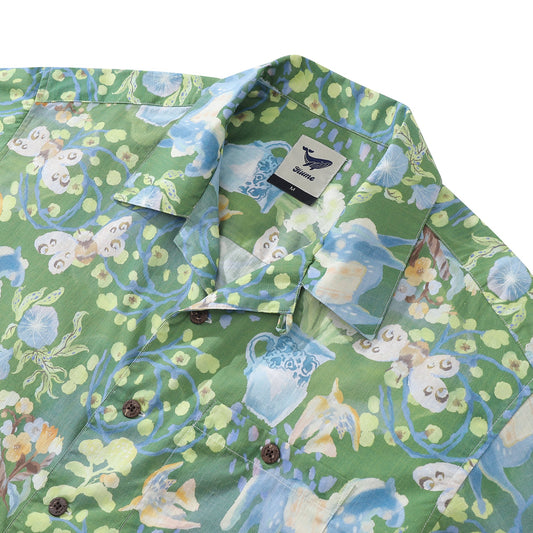 Men's Hawaiian Shirt The Secret Garden Print By Lucille Pattern Cotton Button-down Short Sleeve Aloha Shirt