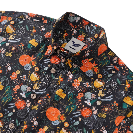 Men's Hawaiian Shirt Fantasy Garden Print Cotton Button-down Short Sleeve Aloha Shirt