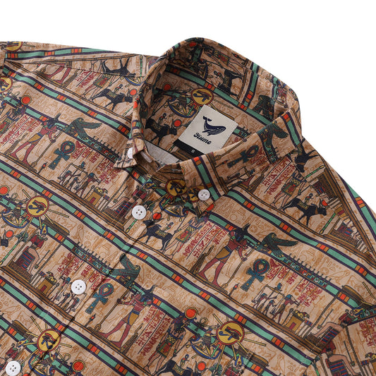 Wrinkle-Free Men's Hawaiian Shirt Egyptian Murals Print Button-down Short Sleeve Aloha Shirt