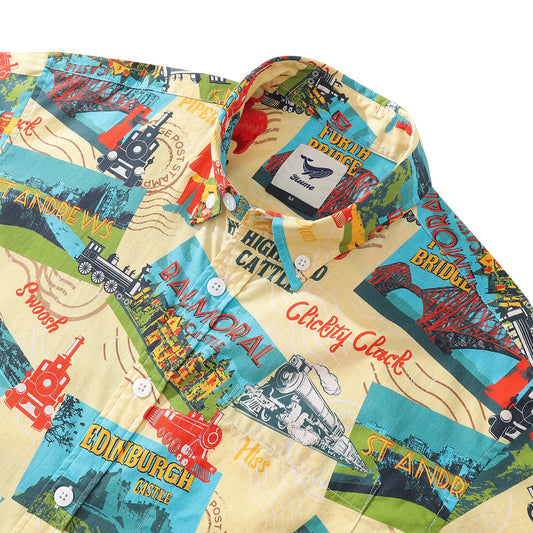 Men's Hawaiian Shirt Heritage Railway Scotland Print 1940s Vintage Short Sleeve Aloha Shirt