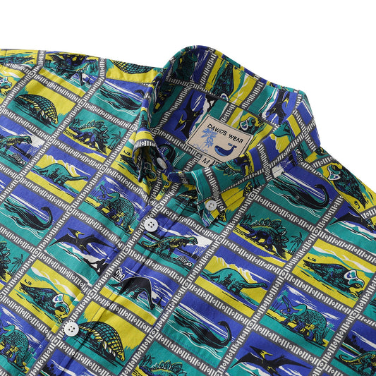 Hawaiian Shirts for Men Retro Dinosaur Stamp Collection 100% Cotton Short-Sleeve