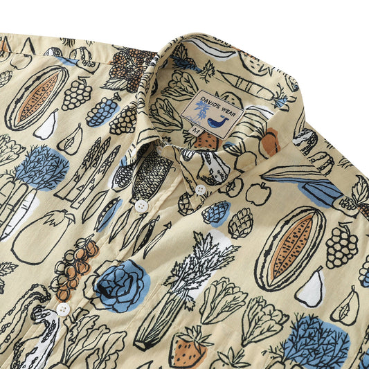 1980s Vintage Hawaiian Shirts for Men Vegetable and Fruit Print Short Sleeve Shirt