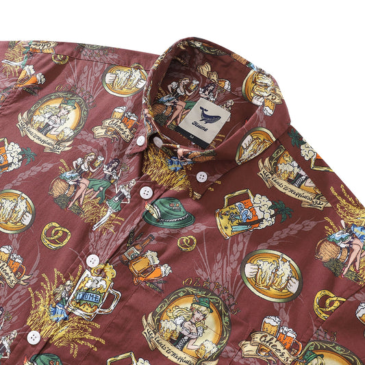 Men's Hawaiian Shirt “O'zapft is” Print Cotton Button-down Short Sleeve Aloha Shirt