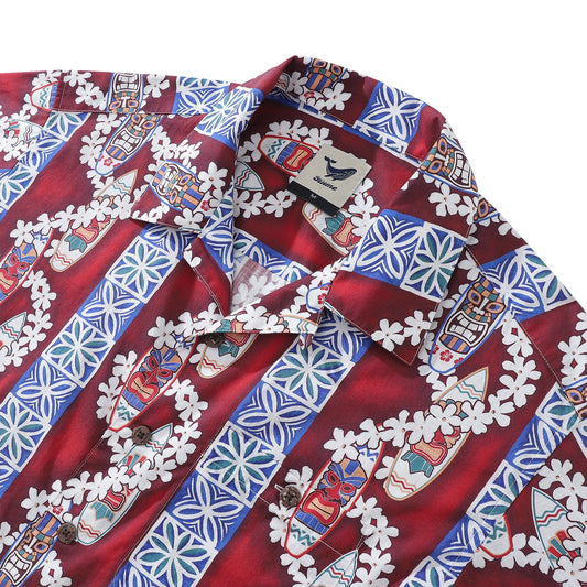 Hawaiian Shirt For Men Surfboard and Lei Shirt Camp Collar 100% Cotton
