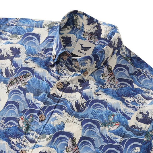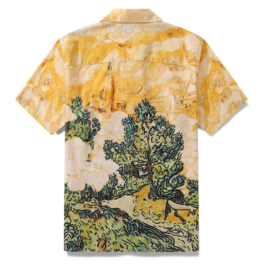 1970s Hawaiian Shirt For Men Artistic Conception Shirt Camp Collar 100% Cotton