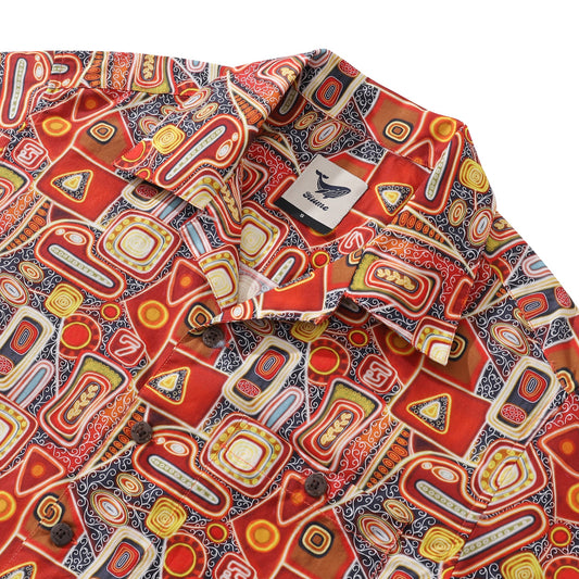 Hawaiian Shirt For Men Circle-Tiki-Patterncrop By Woody Miller Shirt Camp Collar 100% Cotton