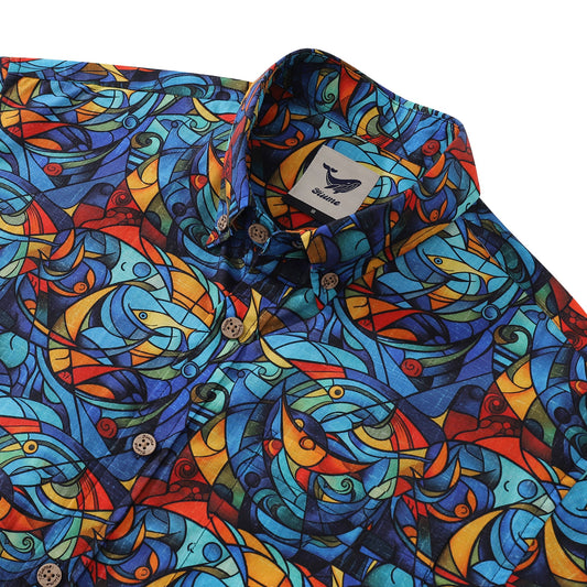 Hawaiian Shirt For Men Oceans and Coral Shirt Camp Collar 100% Cotton