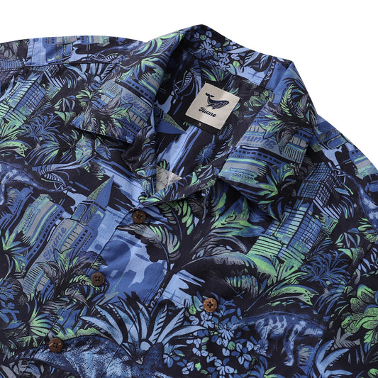 Men's Hawaiian Shirt Mysteries of the Jungle Print Cotton Button-down Short Sleeve Aloha Shirt