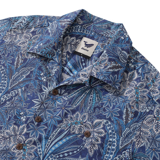 Hawaiian Shirt For Men Tropical Blues Print Shirt Camp Collar 100% Cotton Shirt