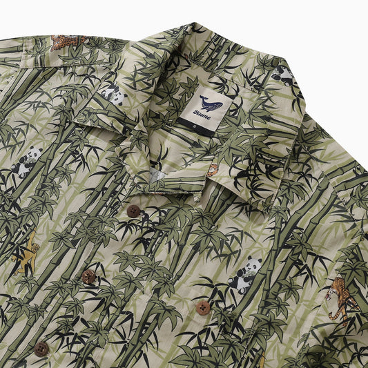 Summer Hawaiian Shirt For Men Bamboo Print Shirt Camp Collar 100% Cotton Shirt