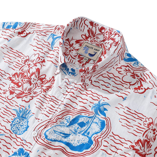 Men's Hawaiian Shirt Island Aloha Shirt Cotton Button-down Short Sleeve Shirt