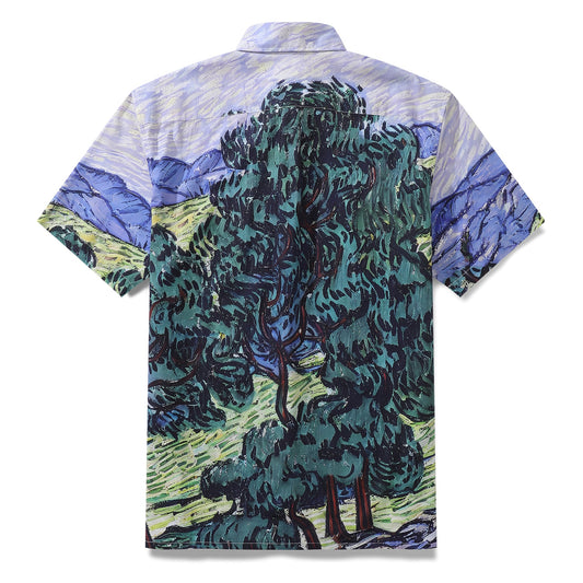 Men's 1950s Vintage Hawaiian Shirt Whispering Trees Print Cotton Button-down Short Sleeve Aloha Shirt
