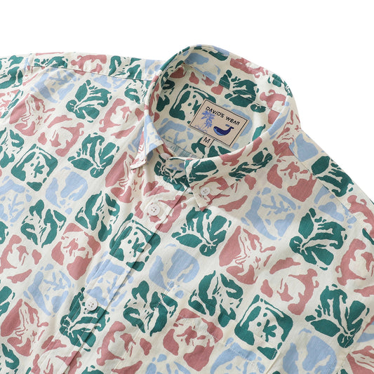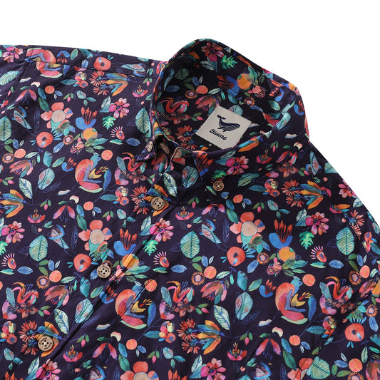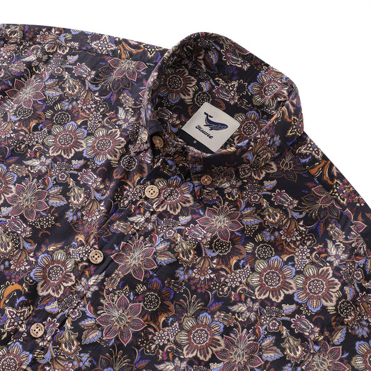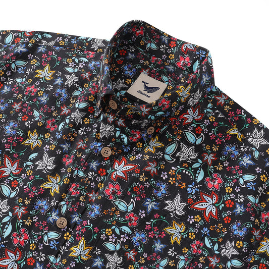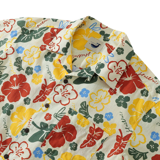 Colorful Flowers Childhood Men's Hawaiian Shirts Coconut Button 100% Cotton
