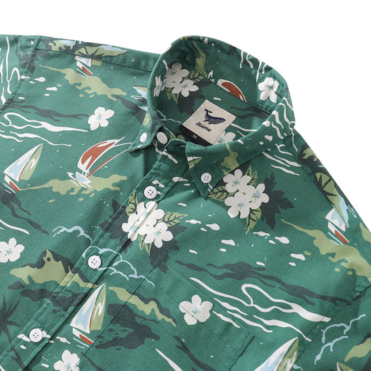 Wrinkle-Free Men's Hawaiian Shirt Summer Sailing Print Button-down Short Sleeve Aloha Shirt