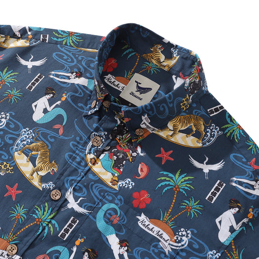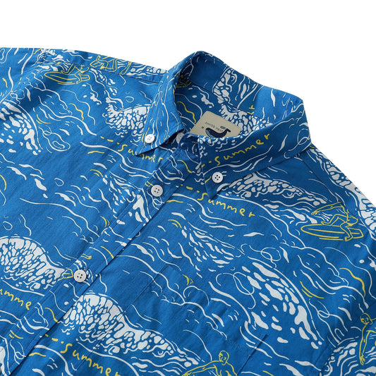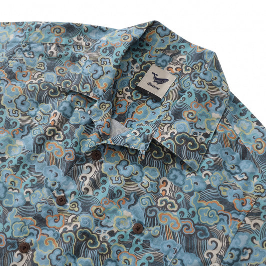 Hawaiian Shirt For Men Billowing waves Shirt Camp Collar 100% Cotton