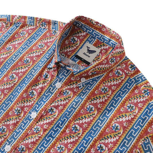 Men's Hawaiian Shirt Samothraki Print Cotton Button-down Short Sleeve Aloha Shirt