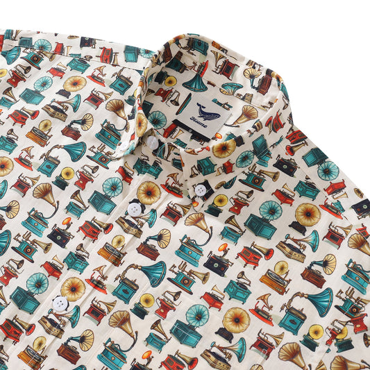 Men's Hawaiian Shirt Tropical Jazz Print Cotton Button-down Short Sleeve Aloha Shirt