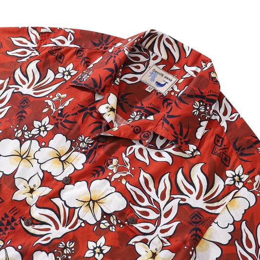 100% Cotton Hawaiian Shirt For Men Crimson Foliage Fantasia Print Shirt Camp Collar