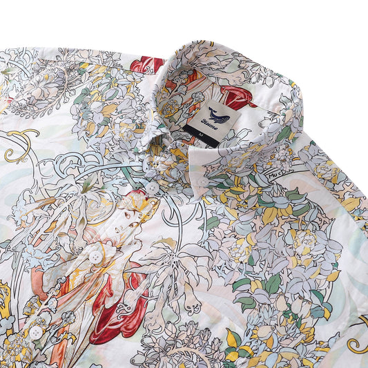 Men's Hawaiian Shirt Garden of Delights Print Cotton Button-down Short Sleeve Aloha Shirt