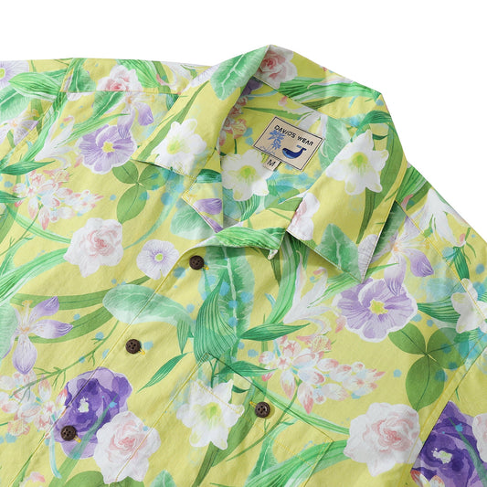Men's Aloha Shirt Yellow Tropical Floral Cotton Camp Collar Hawaiian Shirt