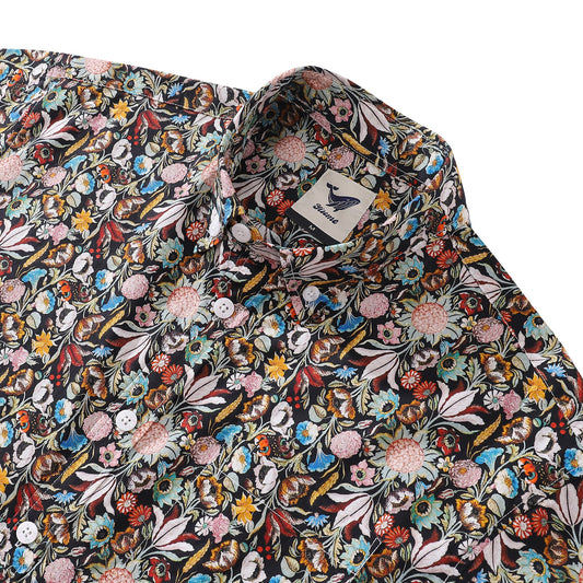 Hawaiian Shirt For Men Autumn Garden Print Shirt Camp Collar 100% Cotton