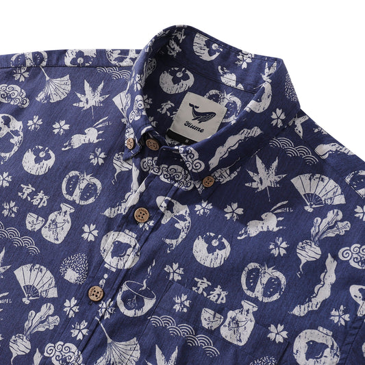 Men's Hawaiian Shirt Kyoto Memories By House of Haricot Cotton Button-down Short Sleeve Aloha Shirt