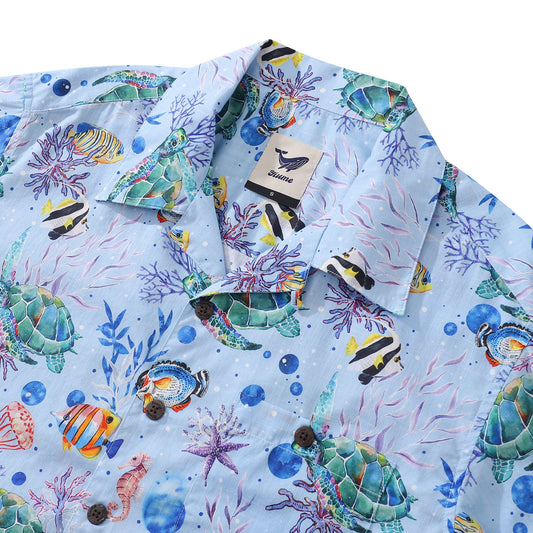 Hawaiian Shirts For Men Vintage Cotton Underwater World Short Sleeve Aloha Shirt