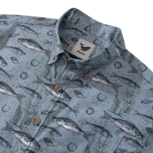 Fish Shirt For Men Gray Hawaiian Shirt Cotton Button-down Short Sleeve Aloha Shirt
