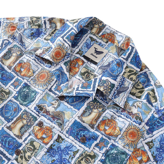 Men's Hawaiian Shirt Libra Print Tencel™ Button-down Short Sleeve Aloha Shirt