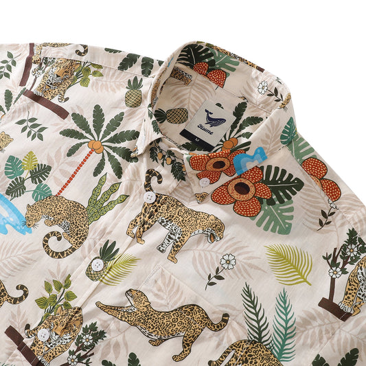 Funky Hawaiian Shirt For Men Adventure of the Jaguar Print Button Down Shirt