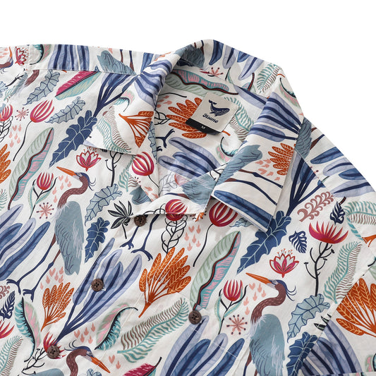 Hawaiian Shirt For Men Heron and Plants By Nina Leth Shirt Camp Collar 100% Cotton