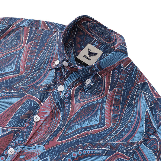 Men's Hawaiian Shirt Euclidean Pattern Print By Brooklyn Bees Design Studio Cotton Button-down Short Sleeve Aloha Shirt