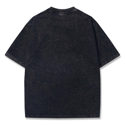 Hawaiian Tee For Men Crew Neck 100% Cotton Vintage Washed T-Shirt - Black