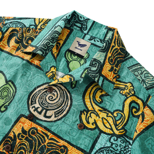 Men's Hawaiian Shirt Short Sleeve Camp Collar 100% Cotton Green Aloha Sanxingdui Sacred Hawaiian Shirt