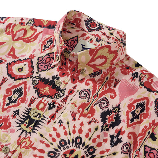 Men's Hawaiian Shirt Short Sleeve Button-down 100% Cotton Aloha Red