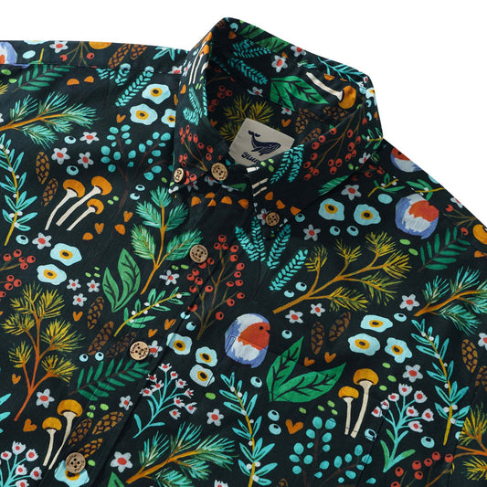 Enchanting Forest Treasures 100% Cotton Men's Short Sleeve Button-down Shirt Green Aloha Hawaiian