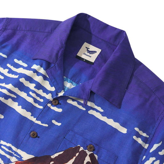 Blue Hawaiian Shirt For Men Fish Shirt Short Sleeve Button-down 100% Cotton Blue Aloha Seaside Boho