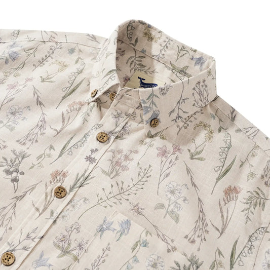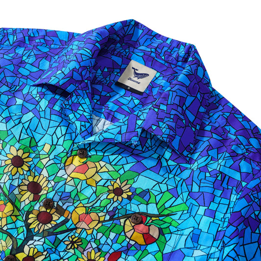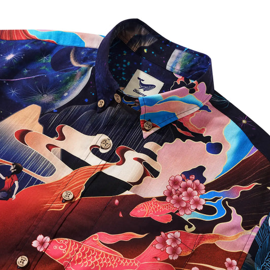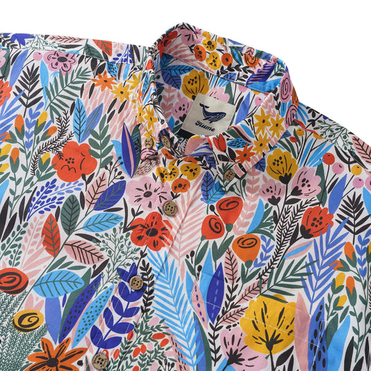Flowering By Maria Galybina Hawaiian-Inspired Art Shirt 100% Cotton Men's Aloha Hawaiian Short Sleeve Button-down Shirt