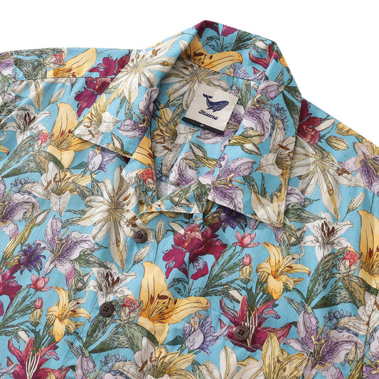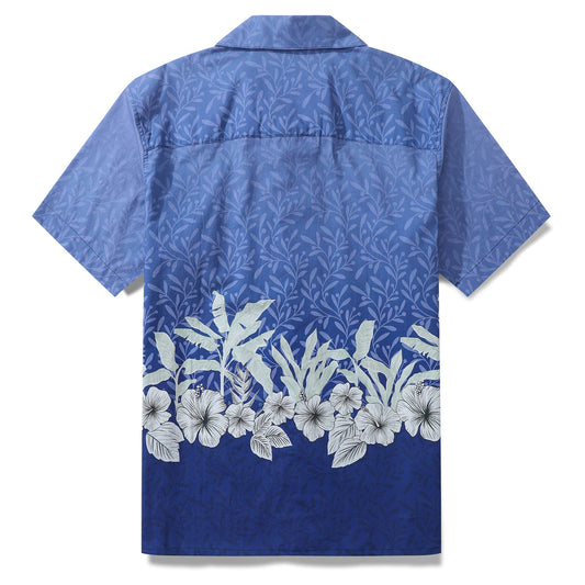 Hawaiian Shirt For Men Retro Blooms Print Shirt Camp Collar 100% Cotton