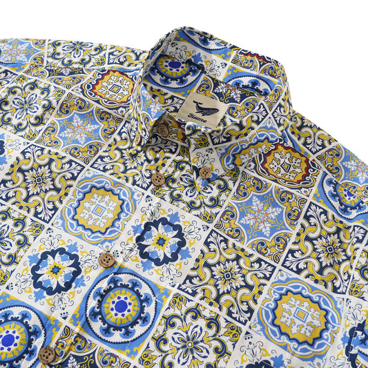 Men's Hawaiian Shirt Short Sleeve Button-down 100% Cotton White Aloha Sicilian Breeze