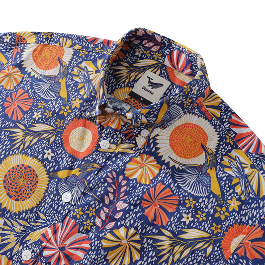 Dance of the Cranes 100% Cotton Men's Aloha Hawaiian Long Sleeve Button-down Shirt