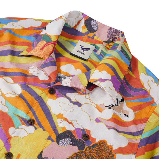 Men's Hawaiian Shirt Short Sleeve Camp Collar 100% Cotton Aloha Rainbow Mountain