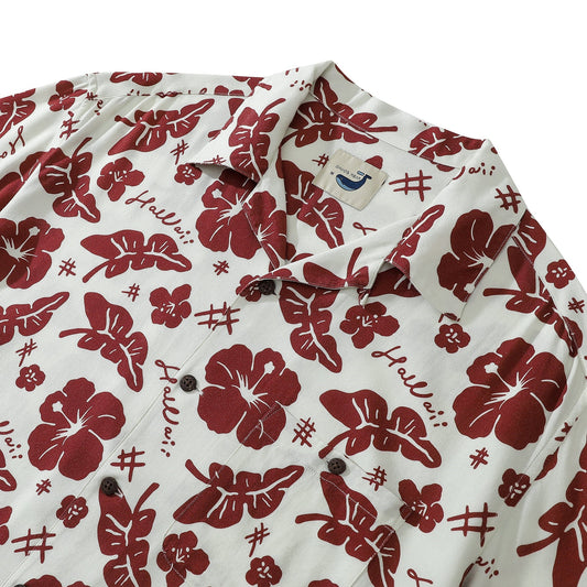 100% Cotton Hawaiian Shirt For Men Red pattern Camp Collar Shirt