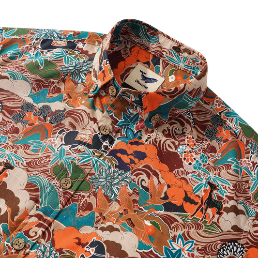 100% Cotton Men's Aloha Shirt Japanese Hawaiian Shirt Short Sleeve Camp Collar Shirt Seven Fortunes Charm Collection