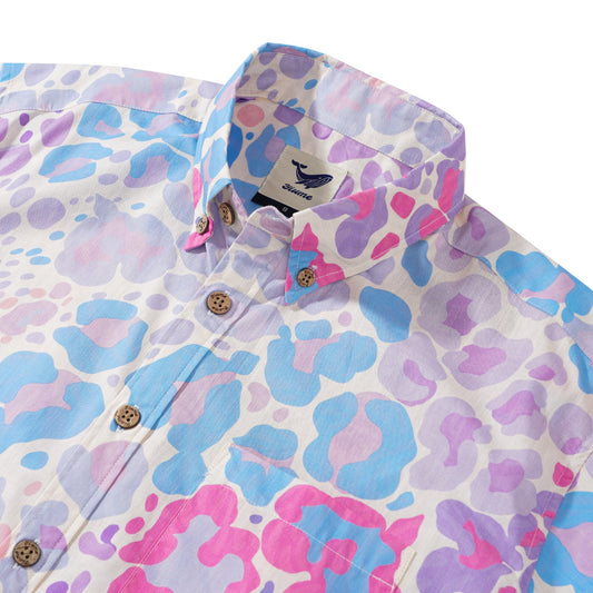 Men's Hawaiian Shirt Short Sleeve Button-down 100% Cotton Beige Aloha Tropical Leopard Fantasy Camo Print